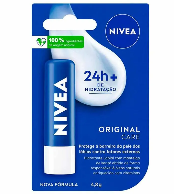 O Hidratante Labial Nivea Original Care 4,8g foi desenvolvido para manter os lábios hidratados e macios ao longo do dia. Ajuda a proteger os lábios contra ressecamento causado por vento, frio e clima seco, proporcionando conforto imediato.