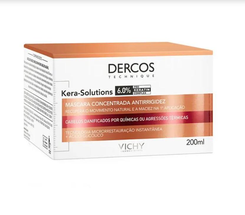A Máscara Capilar Vichy Dercos Kera-Solutions 200ml foi desenvolvida para restaurar profundamente os fios danificados, proporcionando reparação intensa desde o primeiro uso. Sua textura rica envolve a fibra capilar e ajuda a reduzir a aspereza, o ressecamento e o aspecto quebradiço, deixando o cabelo mais macio, resistente e com movimento natural.