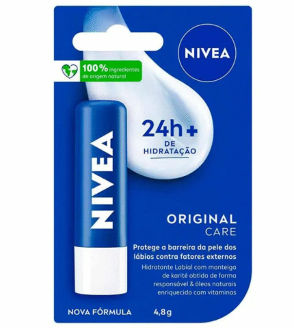 Hidratante Labial Nivea Original Care 48g O Hidratante Labial Nivea Original Care 4,8g foi desenvolvido para manter os lábios hidratados
