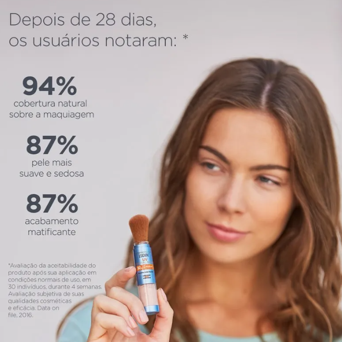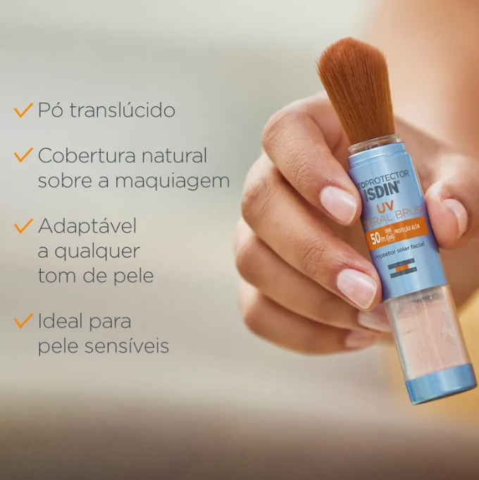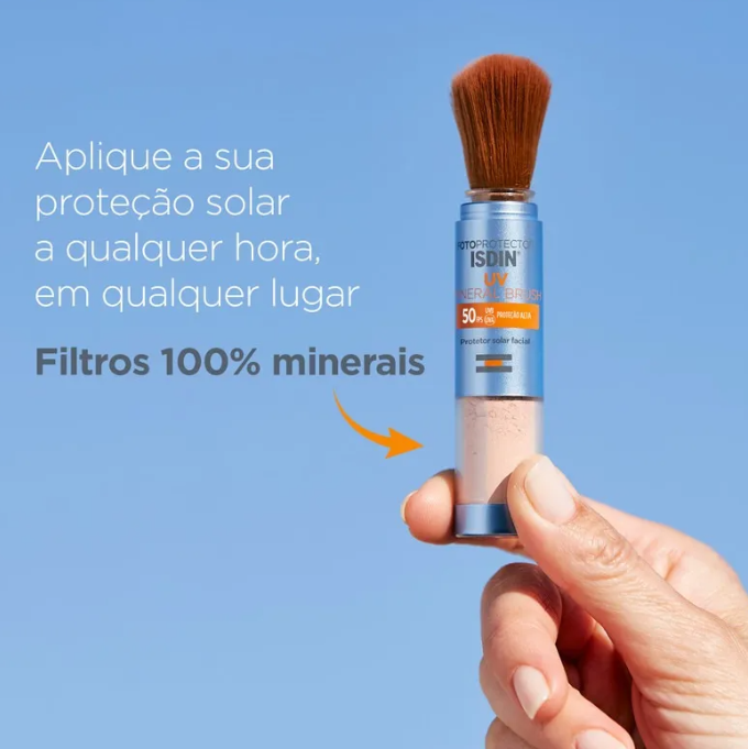 O Protetor Solar Facial Isdin UV Mineral Brush FPS50 2g é uma solução prática e moderna para reforçar a proteção solar ao longo do dia. Sua textura em pó ultrafina, com filtros 100% minerais, oferece acabamento leve e confortável, ajudando a reduzir o brilho sem pesar na pele. O formato em pincel facilita a aplicação em qualquer lugar, permitindo reaplicação rápida inclusive sobre a maquiagem. A ISDIN é reconhecida internacionalmente por sua excelência em fotoproteção, garantindo segurança, eficácia e praticidade para a rotina diária.