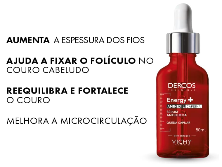 O Sérum Capilar Antiqueda Vichy Dercos Energy+ é um tratamento concentrado para o couro cabeludo, desenvolvido para fortalecer os fios desde a raiz e reduzir a queda. Contém ativos que atuam diretamente no bulbo capilar, estimulam a microcirculação e promovem maior ancoragem, densidade e vitalidade dos fios. A textura leve facilita a aplicação diária sem pesar o cabelo.