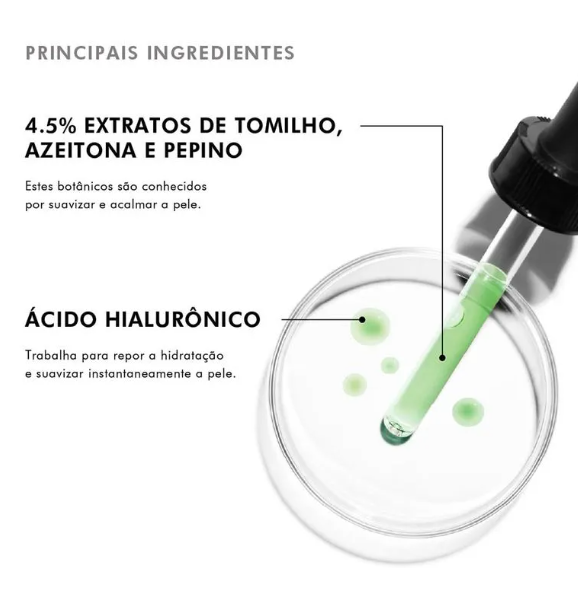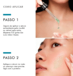 Aplique algumas gotas sobre a pele limpa e seca, espalhando suavemente até completa absorção. Utilize de manhã e à noite, antes do hidratante.